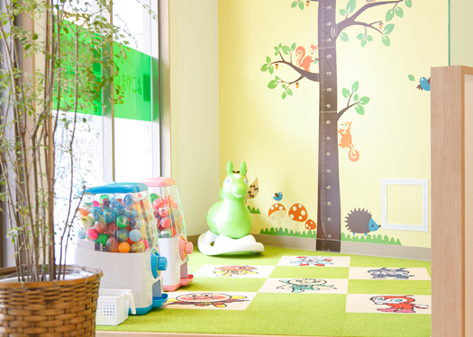 よこやま歯科には、キッズスペースをはじめ、車いすならびにお子さま連れ対応の多目的トイレを設置。お子さまからご高齢の方、お体の不自由な方にも不安なく通っていただける空間づくりを心がけています。