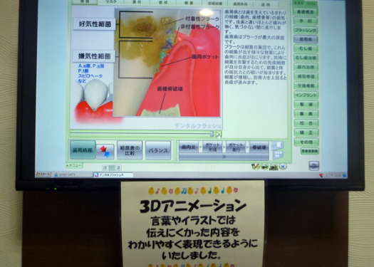 患者さまのお口の状態を、患者さまの分かる言葉で、患者さまがお分かりになるまで説明します。